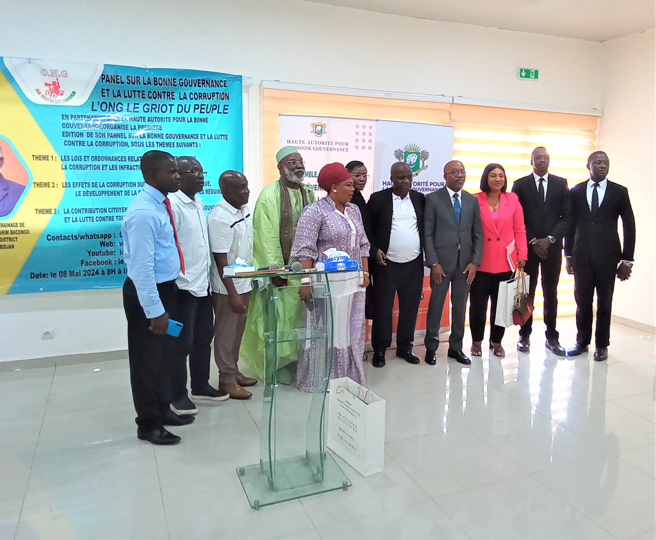 Sous le haut parrainage de Monsieur le Président de la Haute Autorité pour la Bonne Gouvernance, et en partenariat avec la Haute Autorité pour la Bonne Gouvernance (HABG), Monsieur ZORO BIEPIFHANE BALLO, L’ ONG LE GRIOT DU PEUPLE organise la première édition du panel sur la bonne gouvernance et la lutte contre la corruption. A eu lieu le : 08 Mai , 2024                 Time: 10h00               Adresse : Treichville
